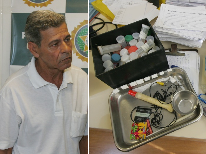 Policiais da DRCCSP (Delegacia de Repressão aos Crimes Contra Saúde Pública) prenderam neste sábado (16) um falso médico em Belford Roxo, na Baixada Fluminense. Sérgio Luiz Pinto, 51 anos, é suspeito de atender pacientes se passando por clínico geral, ginecologista e oftalmologista.
